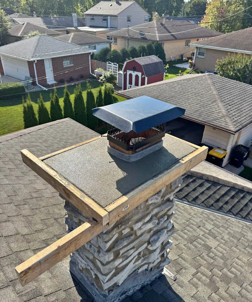 The homeowner now has a chimney built to last 50+ years with proper maintenance. The new crown, flashing, and cap work together to keep water out — addressing the root cause of the original failure. The brick match is seamless, and the chimney looks as good as (or better than) the day the house was built.